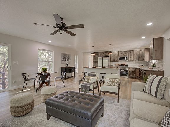 Nestled on over 6 acres of serene land, this beautifully updated home offers 3 bedrooms, 2 bathrooms, and a spacious detached 24x36 garage/shop. The interior boasts numerous modern upgrades, including new kitchen cabinets with granite countertops, updated bathroom vanities, fresh carpet, tile, and paint, as well as sleek vinyl plank flooring. Enjoy the comfort of refrigerated air, a tankless water heater, and energy-efficient vinyl thermal windows. The home is illuminated with mostly LED lighting, and features two decks perfect for relaxation. Outdoors, a rain capture system is in place, and approximately 2 acres are fully fenced. With paved roads leading right to the driveway, this property provides both privacy and tranquility, making it an ideal retreat.