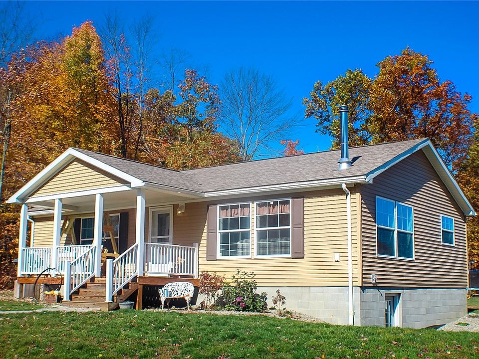 Nestled off the beaten path, this home built in 2017 provides the serenity you are looking for. Featuring 2 bedrooms and 2 bathrooms, main floor laundry room, and open concept between kitchen and living room, along with the framed in basement ready to be finished for a 3rd bedroom. Cozy up next to the high efficient wood stove in the living room during those cold Pennsylvania winters or use the ease of the electric furnace. Central air will also provide you with an escape from those hot summers. A large detached garage provides plenty of space for parking, storage, or using it as a shop. The shed and separate outbuilding provides additional storage for your equipment. Wonderful country setting down a dead end road with beautiful views across the valley from the back of the property, you don't want to miss this one!