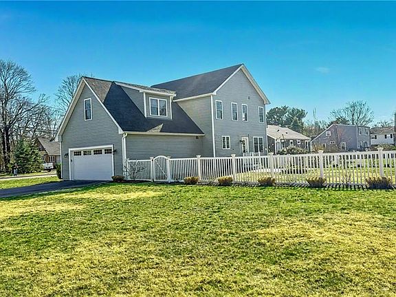 Walk to the water from this stunning, 6-year-young, sun-filled Craftsman-style home in highly sought after Potowomut where a modern yet classic aesthetic meets coastal charm. This home was designed with a neutral palette and custom accent walls that exude warmth and character. Bright eat-in-kitchen features gas oven/range, custom cabinetry, and a spacious island, seamlessly flowing into an open-concept living and dining area with gleaming hardwoods and abundant natural light. Thoughtfully designed spaces create a perfect balance of elegance and comfort. Upstairs, the cathedral-ceiling primary suite offers a spa-like bath and walk-in closet, providing a serene retreat. With two additional generously sized bedrooms, second floor laundry and a massive bonus room there are many options to meet your living needs. A finish-ready and dry basement and attached two-car garage adds convenience and storage, while the inviting front porch and expansive backyard offer the perfect spots to entertain and relax. Situated on a spacious, fenced corner lot. Ideally located with so much to enjoy...A short stroll to the association beach for the best sunrises or Goddard Park for hikes and picnics, private and public golf clubs and minutes from downtown East Greenwich shopping, restaurants and marinas. Absolutely nothing to do but move in and call it home!