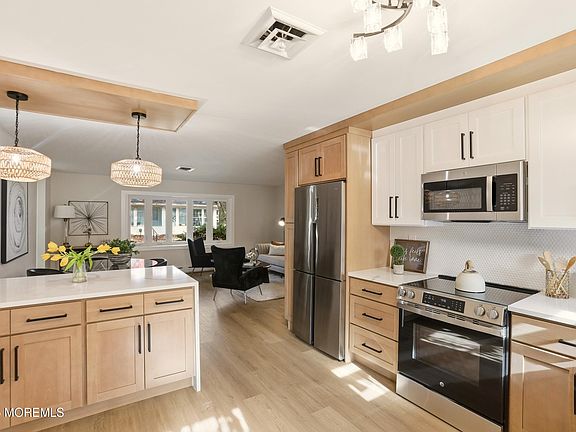 This fully updated custom Baronet model offers 2 bedrooms and 1 full bath, showcasing style, comfort, and functionality throughout. Enjoy maintenance-free living at its best in this beautifully renovated home. Step into the stunning modern kitchen, featuring stone countertops, white cabinetry, an island with extra storage, and upgraded stainless steel appliances. The bright and inviting living room offers picturesque windows and an eating nook, creating a warm and welcoming space to relax or entertain. A bonus office area adds flexibility for work or hobbies. Both bedrooms feature updated flooring and brand-new closets, including a primary bedroom with ample storage. The fully remodeled bathroom boasts a walk-in shower with built-in bench, wood accent wall, waterfall showerhead, and black hardware finishes. Additional highlights include a fully enclosed sunroom, a one-car garage with shelving, and pull-down attic stairs for extra storage. Move right in and enjoy this beautifully updated home where comfort meets convenience!
