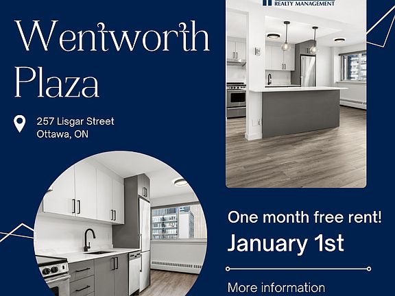 Wentworth Plaza, situated in the heart of downtown Ottawa, is ideally located for those who wish to be close to work, shopping, and leisure activities. Within walking distance is the Rideau Canal, National Art Centre, Parliament Hill, and the Byward Market area.