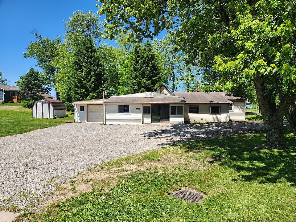 Dare to compare.....This 1600+ sq. ft. ranch offers 3 BR's/1 BA, double size lot on 1/3+ acre with mature trees, circular driveway, storage shed, 1+ car extra deep tandem garage, den/flex room, updated bath and updated/equipped eat-in kitchen with step down dining room, 1st floor laundry with sliding barn door (washer/dryer convey), spacious living room, 3-season room, and optional storage/mud room. This home just needs your finishing touches to make it complete...great opportunity for instant equity and/or investment opportunity as potential rental. Being Sold ''AS IS''. See A2A remarks concerning flooring finishes.