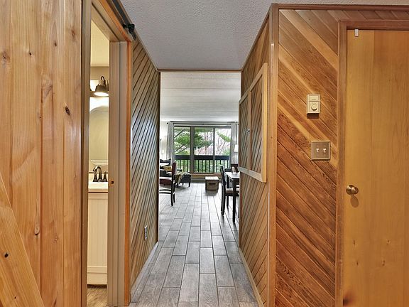 Welcome to this beautifully updated 1-bedroom unit located on the second floor of Building E in the Pinnacle complex. Conveniently situated just above the fully renovated Pinnacle Spa—scheduled to reopen in November 2025—residents will soon enjoy access to a spacious hot tub, a private hot tub, steam room, sauna, and a brand-new bar lounge. The unit itself has been tastefully remodeled, featuring elegant porcelain tile flooring, maple cabinetry, stunning quartz countertops, and newer appliances. The bathroom has been upgraded with a sleek tiled shower, glass doors, and a rainfall-style shower head for a spa-like experience. Offered, fully furnished and equipped, with new full-size washer and dryer this turn-key condo is just minutes from Killington lodge and includes a winter shuttle service to and from the slopes, making it an ideal mountain retreat or investment property.