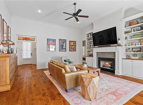 Tucked away on a peaceful cul-de-sac yet perfectly positioned in the center of town, this 4-bedroom 2-bath rental offers the ideal combination of convenience, comfort, and charm. Enjoy quick access to Mandeville and Covington and the highly rated Mandeville Blue Ribbon school district. A welcoming front porch sets the tone for this inviting home great for relaxing afternoons or casual entertaining. Inside, a custom foyer opens to soaring 12-foot ceilings and a wall of windows that flood the space with natural light. The open-concept living room features a gas fireplace framed by custom built-in bookcases, creating a warm and elegant centerpiece. The chef's kitchen is both functional and stylish, boasting stainless steel appliances, a large island, abundant storage, a walk-in pantry, and a coffee or wine bar nook. Throughout the home, handcrafted built-ins designed by a local carpenter add a touch of artistry and character. The primary suite serves as a private retreat with a soaking tub, dual vanities, and an oversized walk-in closet. Three additional bedrooms are thoughtfully positioned in a split floor plan, sharing access to a beautifully appointed second bath. Step outside to a fully fenced, oversized backyard backing up to 100+ acres of serene woods a natural backdrop where you can often spot deer and bunnies while enjoying your morning coffee. The recently completed rear extended patio is great for entertaining, gardening, or simply unwinding after a long day. This home truly has it all style, space, and an unbeatable location ready for you to move in and make it your own. Call for a private tour.