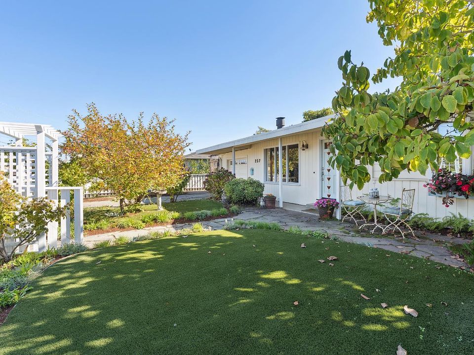 This is it if you're looking for a charming single-story residence with proximity to all services and the Sonoma Plaza and an oversized, in-town parcel. Upgraded and enhanced over years, this home has a great floor plan and artistic finishes, hardwood floors, new HVAC '24. Living room with a cozy fireplace, built-ins and picture windows with garden outlooks bring in light and nature. You'll be impressed with the dine-in kitchen as it reveals concrete slab countertops, pressed aluminum backsplash, Dynasty gas stovetop with griddle and hood and double ovens; a greenhouse window and French doors bring in light and outlooks. The kitchen opens to a large outdoor dining and lounging deck overlooking the pool and gardens for seamless indoor/outdoor lifestyle. Guest bedroom wing and bath are separate from the spacious primary suite with French door access to lush grounds with inground pool and a multiple patios. Large parcel has been cultivated to create a serene respite with all the conveniences of in-town living. A lovely greenhouse and a convenient outbuilding at aside cutting and growing garden beds, convenient interior laundry room with storage, interior garage access. A peaceful, in-town haven for year-round enjoyment. Apx. 1+/- hour from San Francisco.