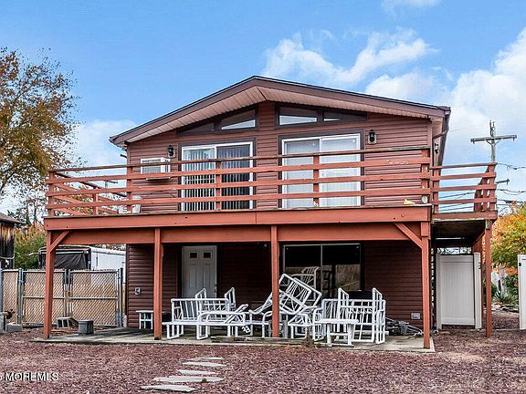 Cozy winter vibes await here on the south branch of the Sawmill Creek! This rustic cabin type raised ranch offers two levels of living space with separate entrances, tons of parking, all set on a serene slice of waterfront heaven. If you are a wildlife lover or bird watcher, this home sits adjacent to undeveloped county owned land extending out to the main part of the Manasquan River. The great room upstairs includes a vaulted ceiling open to the kitchen and dining area with two massive sliders overlooking the creek and a woodburning fireplace as the focal point. This solid home has full concrete block foundation walls on the first floor and a Timberline roof just 5 years old. With some creativity this charming home can be a unique and practical home or vacation spot.