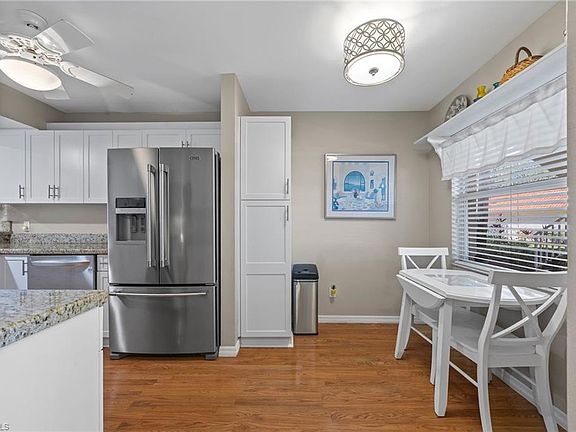 Light, Bright & Beautiful—Your Naples Oasis Awaits in Sherwood! Discover sunshine, serenity, and scenic lake views in this inviting first-floor condo (no steps) located in the highly desirable Sherwood community of East Naples. Offering partially furnished 3 bedrooms and 2 bathrooms (one of the bedroom has double doors and could make the perfect den), this residence is perfectly positioned in a non-flood zone with sunny southern rear exposure. Step inside and feel instantly at home. The open-concept living area features breezy coastal décor and flows seamlessly to a screened lanai where peaceful lake and preserve views set the tone for tranquil mornings and picture-perfect sunsets. Whether you’re sipping coffee, birdwatching, or winding down at the end of the day, this backdrop is nothing short of exceptional. The spacious kitchen blends style and functionality with updated cabinetry, stainless steel appliances, a kitchen bar with plenty of seating, and a cozy breakfast nook—ideal for relaxed meals or entertaining friends. The primary suite offers comfort and privacy with an ensuite bath with a walk-in closet and tiled shower. Two guest bedrooms share a full bath, giving everyone their own comfortable retreat. Additional perks include in-residence laundry, a dedicated one-car garage, an assigned parking space, roll-down hurricane shutter on the lanai and upcoming new hurricane-impact windows scheduled for installation this spring, ensuring peace of mind for years to come. Recent upgrades include a new HVAC system (2023), a newer roof (2019) and new washer/dryer (2024). This home has been meticulously maintained, offering a move-in-ready opportunity to enjoy one of Sherwood’s best views. Sherwood is beloved for its lush landscaping, expansive lakes, and warm, welcoming atmosphere. Residents enjoy an active resort-style amenities including two sparkling community pools, a clubhouse, fitness center, tennis and pickleball courts, and scenic walking paths. With just 336 coach homes and condos, the community strikes the perfect balance between peaceful living and vibrant social opportunities. The location couldn’t be better—just minutes to downtown Naples, 5th Avenue shopping, the Naples Pier, pristine Gulf beaches, Marco Island, Tin City, and world-class dining. Quick access to I-75 ensures convenient travel to RSW Airport, the Paradise Coast Sports Complex, Great Wolf Lodge, and countless local attractions. Zoned for an excellent school district and offering low quarterly fees that include cable and internet, Sherwood delivers both value and lifestyle. If you’ve been dreaming of a bright, peaceful, move-in-ready home with postcard-worthy views, this Sherwood gem is your chance to make it reality.