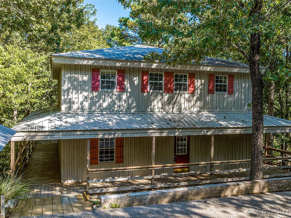3 Bed 2.5 Bath home with a basement located within the Flint Ridge Development. This home features hardwood floors throughout a majority of the home with 9' ceilings throughout. The house has undergone many recent updates including new kitchen counters, newer kitchen appliances, and two brand new A/C units have just been installed with a warranty that is transferrable to the new owners. The layout of the home holds three bedrooms upstairs, a large open space on the main floor for entertaining guests, and an open basement to be used as you see fit. The exterior of the home has a fully covered wrap around deck perfect for enjoying the nice quite timbered surroundings. There is a detached garage for storing your vehicle and golf cart out of the elements. The home is situated in close proximity to the community golf course and being a member of the community allows you to enjoy all that Flint Ridge hast to offer which includes: a well manicured golf course, camping and hiking trails, a fitness center, float trips along the Illinois River, a Recreation Center with Swimming Pool, and much more.
