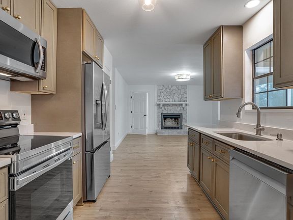 **Welcome to a Beautifully Updated Home with an In-Ground Pool** As you step inside this charming 3-bedroom, 2-full-bathroom home, you're greeted by a spacious and inviting split floorplan. The family room offers a cozy retreat, complete with a whitewashed fireplace, perfect for relaxing or entertaining guests, open to the kitchen. Continue into the dining room, where modern updates shine with new light fixtures illuminating the space. The adjacent living room provides ample room for gatherings and features a bright bay window. The new texture and fresh coat of paint carry throughout the house. The kitchen boasts new wood cabinets and appliances, including a sink, disposal, fridge, microwave, and range oven. Each detail adds to the elegance of the space, making it a joy to prepare meals and entertain. On one side of the house, the Master Suite features a beautifully renovated private bathroom with a frosted glass barn door for privacy, a large walk-in closet, and a private step-in shower/toilet room featuring all new tile and fixtures. On the opposite side of the house, two good-sized rooms share a large bathroom, featuring a double vanity, new tub, new tile, and all new fixtures. Step outside onto the large back patio, freshly painted and covered by the roof. A river rock concrete patio connects you to the in-ground pool, which boasts a new liner, perfect for enjoying summer fun and relaxation. The landscaping has been cleaned up, ready to bloom in the upcoming season, enhancing the beauty of the home's exterior. The house has been fully pressure washed, including the roof, ensuring a clean and welcoming first impression. Additional features include a serviced A/C unit, new plumbing inlets, faucets, and fixtures, as well as new lighting fixtures, plugs, and switches, adding both beauty and value to this stunning home.