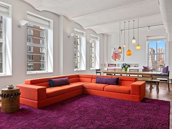 Encompassing the whole west side of the seventh floor, the spectacular floor-through 7AB has southern, western and northern views, gloriously enhanced by seventeen new, oversized, triple-pane acoustic, tilt-and-turn windows custom made by Skyline. Complete with the open sky are views of the Freedom Tower and Hudson Yards.
