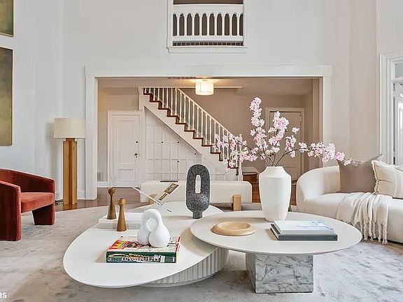 Immediately upon entering you will be awe struck by the sheer volume of the space-the stunning living room with wood burning fireplace and over 20 foot ceilings. Adding to the grandeur is the almost floor to ceiling, wall wide window facing North with wonderful light all day.