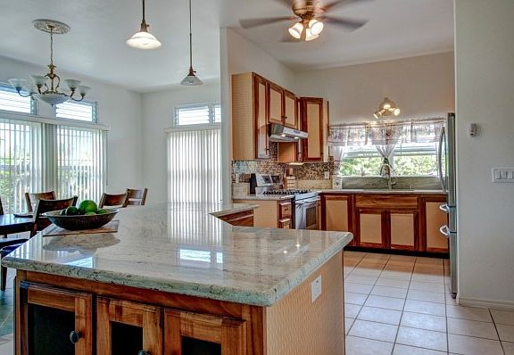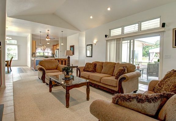 Welcome Home! This large beautiful home is ready for you to move right in! Double door entry opens to a vanity wall that separates the entrance from the living areas. This home offers lots of room for everyone to have their own space, there are even two extra rooms and a bathroom off of the garage which can be used for almost anything (owners used one as a gym). Thoughtful details have been added to this home including a large gas stove, perfect for the cooking enthusiast, solid granite countertops and Koa cabinets, a $37,500 fully paid for 7.50 kw Solar PolarVoltaic System that keeps the electricity bills down to less than $23 a month, electronic gate welcomes you onto this fully fenced in property with fruit trees scattered intermittently. Jack and Jill bathrooms, walk-in pantry, ceiling fans throughout, and so much more. Step into this warm inviting house and you will know you have found something very special. Close enough to town to enjoy all the amenities of Hilo, yet tucked away from the noise, enjoy quiet nights sitting in the yard looking at the stars!