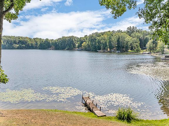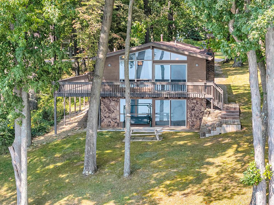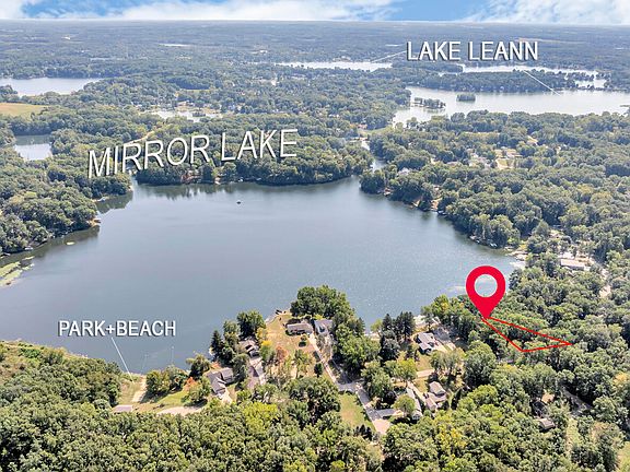 ESCAPE TO THE LAKE IN THIS TRUE NORTHERN MICHIGAN SETTING! Nature's beauty is getting ready to shine & there's no better seat for panoramic main-lake views than this expansive wrap around deck overlooking Mirror Lake. Tucked into the Irish Hills, you'll fall in love w/the peaceful setting, elevated views & vaulted ceilings. Lined w/walls of windows & Mid-century modern lines of architecture, wood beams carry throughout the open concept main floor. Finished walkout lower level offers a spacious living rm, wood stove & wet bar. The exterior of the home was just freshly painted & new roof 2021. Oversized 1 car garage & covered patio that could easily become a screened/enclosed porch or carport. Mirror Lake is a private lake w/park just down the rd. Discover Mirror Lk @ www.mirrorlakemi.org