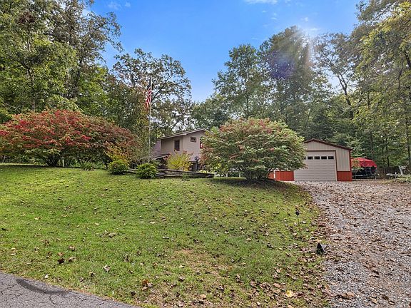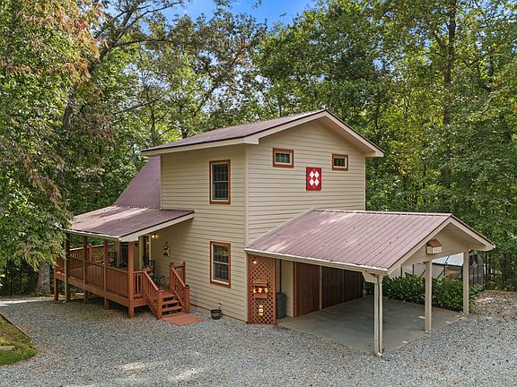 The Perfect NC Mountain Cabin, Excellent year round access and Conveniently located close to Lake Chatuge and a public boat ramp, this cabin offers an open floor plan, great room with soaring wood cathedral ceilings & floor-to-ceiling windows creating a light atmosphere, adjacent dining area and kitchen with custom built cabinets with new appliances and new granite tops, and one of the TWO Master Suites. Just upstairs is the 2nd Master Suite with the additional Sitting area/Office space. The lower level offers a huge family room, 3rd bath and bonus room, laundry and even more storage! PLUS an attached carport and detached metal garage, decks/porches and outdoor living areas with fire pit and outdoor seating area! Fiber Internet