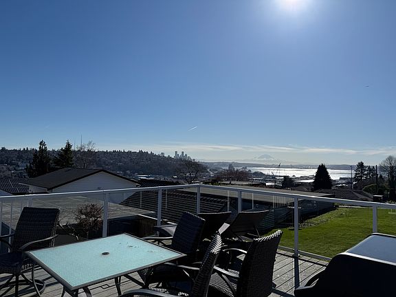 Updated Magnolia view home for rent on a beautiful street with 180-degree views from the Cascades to Rainier, including the Seattle skyline and Elliott Bay. Main floor includes 2 bedrooms, 1 bathroom, kitchen, living, dining and an outdoor deck. Basement includes small living space, 3rd bedroom and bathroom, laundry room and ample storage. Small garage off the alley. Close to bus line, bike paths, downtown, Discovery Park, and Magnolia Village. Available now!