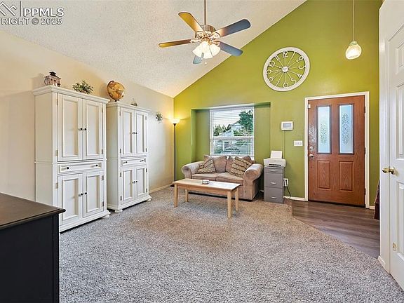 Incredible centrally located with in a well established neighborhood. Walking up to the home the lush green lawn beckons you towards the covered front porch, the perfect place for morning coffee during the summer months. Through the front door the front room feels grand with the vaulted ceilings. The dining and kitchen are just beyond the front room. The updated kitchen features gorgeous stone counter tops, stainless steel appliances, and ample cabinet space. Down the half flight of steps the living room has a beautiful brick accented wood fireplace, the ideal place to warm up on colder Colorado nights, and walk out access to the back yard. The back yard has a stunning stone patio, garden area, and partial xeriscaping for entertaining, children playing, pets, or all of the above. Completing the lower level is the laundry room and half bath. Back to the main level and up a half flight of stairs the upper level hosts all three bedrooms including a spacious master suite. The master suite boasts an updated ensuite bath with stone countertops for the double vanity, beautiful faux tile flooring, and a shower/tub combination. Bedrooms two and three share a second full bath. The basement level has a large family room which is currently being utilized as a workout and home office area but can be configured in many different ways depending on needs. This home is a wonderful floor plan for both privacy and togetherness as it offers the best of both worlds through the split-level. The home is ideally located with easy access to shopping, restaurants, and entertainment further North on Academy Boulevard, or a little further more on Union Boulevard headed towards Briargate Parkway and all the shops at Briargate has to offer.