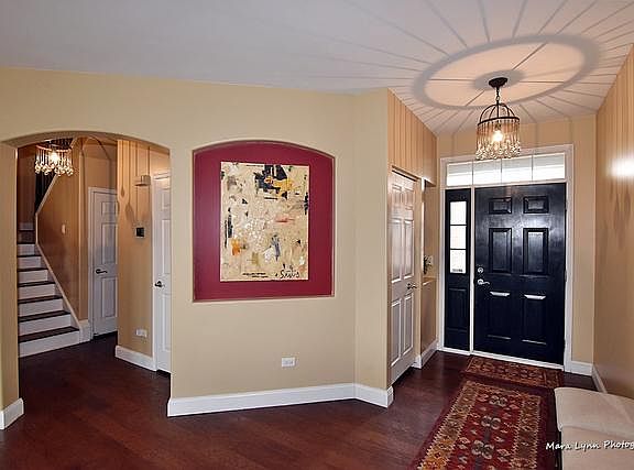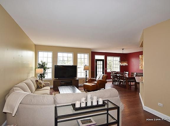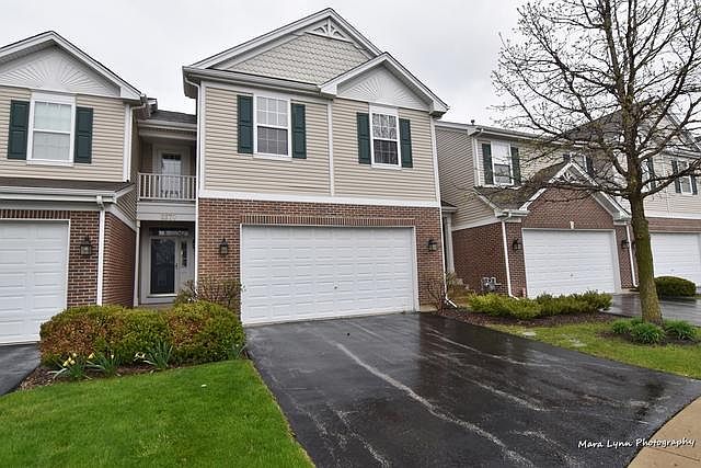 Spacious Dunhill model boasts a private deck with water views. This model is designed for easy entertaining with open 1st floor plan, wide plank low maintenance wood laminate flooring, 9' ceilings and upscale light fixtures.. Let the party flow right out to your 16'x22' maintenance free Trex deck with great views of the water. Cooking will be a joy in this kitchen - SS appliances, granite counters, glass tile back splash, and painted cabinets. HUGE master bedroom has vaulted ceilings, spacious sitting area with lots of windows overlooking pond; attached master bath. 10' ceilings on 2nd floor with 2 more bedrooms plus bonus flex room could be loft/office/den with balcony access. Finished basement with work room and plenty of storage. Walking distance to the Geneva Commons. Neighborhood amenities include parks, walking paths, and ponds. Home is within the highly rated Geneva school system. Enjoy a maintenance free lifestyle without compromising space in this wonderful home.