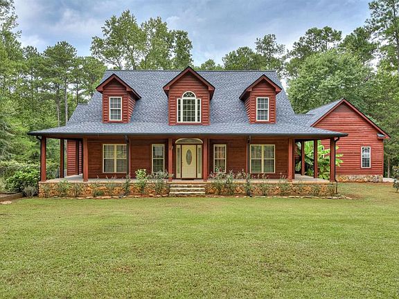 Completely updated home with pond and 5.2 acres custom built by previous owners. High ceilings and spacious foyer welcome you into this pristine home. Real hardwood flooring throughout,( great room and all upstairs bedrooms were added by current owner). Kitchen updates include quartz counter tops, iridescent back splash tiles,new appliances (refrigerator, range, ovens). Owner suite features free standing claw foot tub, separate shower, huge closets. All lighting replaced throughout home and fan/light kits in all bedrooms added. Beautiful sinks & counter tops added in all baths. Newer roof (2 years old), Depend a coat stain on outside wood;. 2 new HVACs replaced by current owner. Huge separate workshop with single garage. Home has double attached garage, sprinkler system and totally repainted interior. Pond has bream, bass and catfish, new comcast lines added