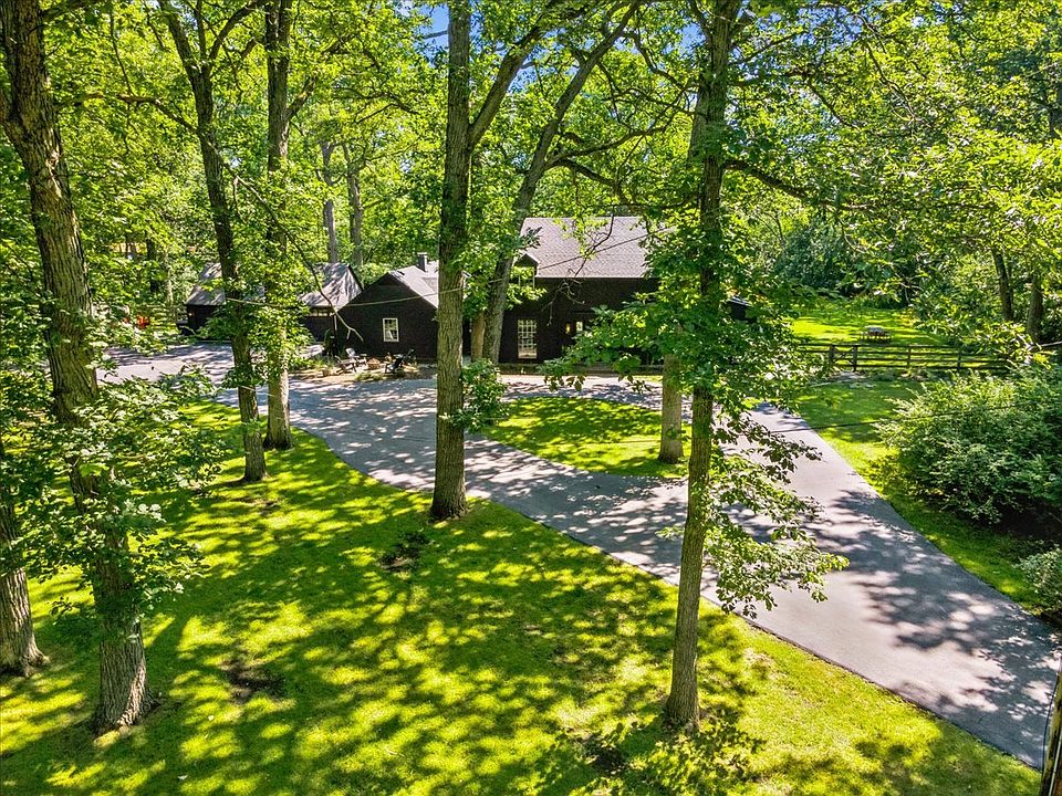 Tucked among the trees on 2.75 acres, this beautiful Riverwoods home designed by architect Stanley Anderson offers a rare blend of timeless design, modern comfort, and a connection to the land. Drive up the private road to a tastefully home renovated from the inside out. Refinished original hardwood floors throughout both the main and upper levels with the exception of poured concrete radiant heated floors in the kitchen and family room. Kitchen has been masterly redesigned to include a 6 burner stove with grill and commercial vents, with all new cabinetry, stainless and quartz.The main level features two ensuite bedrooms, ideal for guests or multi-generational living. The screened in porch has been finished out for year round use. Three bedrooms on the upper level including a spacious primary suite. Included in the renovations were new windows, upgraded electric, plumbing, new HVAC, closed foam cell foam insulation and a whole home reverse osmosis system. Outdoors, this fenced in property becomes something even more truly special. A charming stable, shed, garden space, fire pit, seating/eating area and 3 car garage. New Hardee siding and roofs. Located minutes from Downtown Deerfield and Highland Park, 94 and Metra Station.