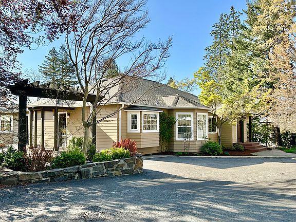 Exquisite estate in serene private rural setting with all the conveniences of being in town on 3.4 irrigated acres with manicured grounds, pasture, and multiple outbuildings. The single-level, 3014 sf home features 3 bedrooms + study, and 3 baths with gorgeous mosaic tile. The spacious kitchen boasts leathered granite, antique glass-front cabinets, center island, gas range, and large pantry. Enjoy hardwood floors throughout, gas fireplace, & energy-efficient Mitsubishi mini-split system. The elegant primary suite offers a sitting area, walk-in closet, and courtyard access. Outdoor living includes a pebbled-concrete courtyard with boulder water feature and fire pit, huge fenced-in garden, tons of parking space, and all the outbuildings you could need: finished barn with bathroom, studio garden workshop, storage building, detached 2-car garage with carport + office space, plus a magical tree house! Complete with gated paved entry, TID irrigation pond, RV parking. Eligible for ADU.