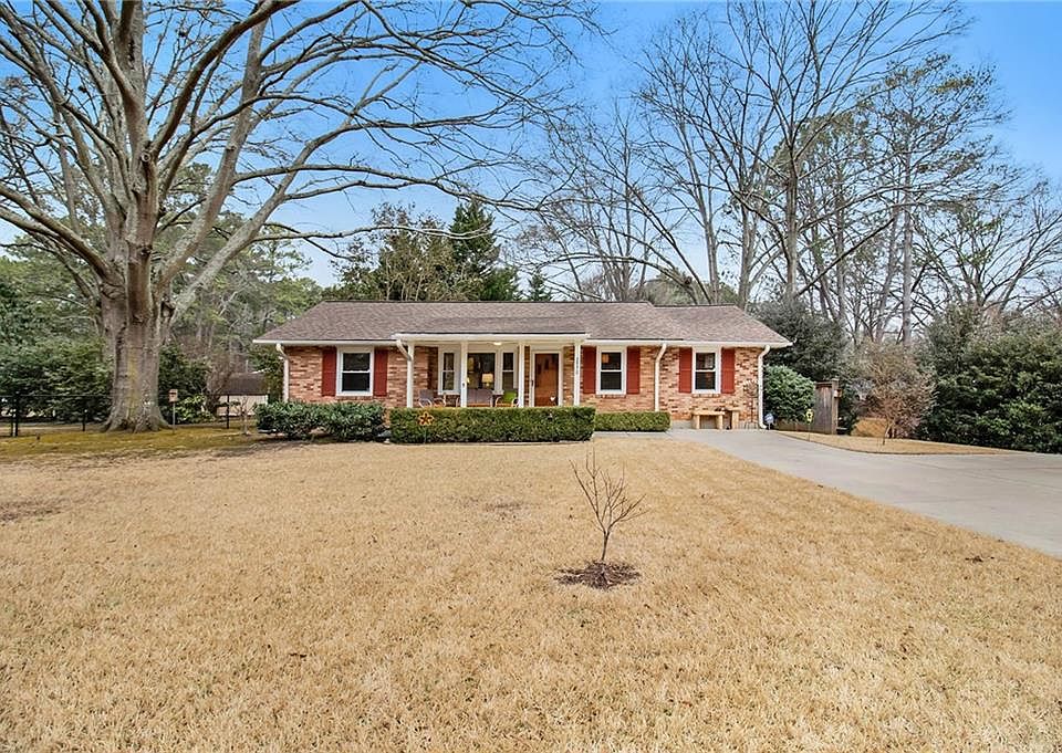 Beautiful well composed Mid Century ranch featuring an amazing covered front porch where neighbors enjoyed socially distanced concerts. What better place to gather than in the shade of a monument Oak on a .43 acres high ground flat lot( Almost a double lot!). Great care was taken to renovate while respecting the original character. Pristine designer kitchen with KraftMaid period style cabinets, Quartz counters, built in breakfast table with Quartz top, & SS GE Appliances + Range Hood vented to the outside. Immaculate high end full bathroom with custom shower with frameless glass and period tile. Private backyard botanical oasis with a Flagstone patio, whimsical paths, extensive plantings( Japanese Maples, Camelias, Gardenia, Hydrangeas & much more) , and enchanted secret gardens. * Separate LR, DR and Den with Clerestory windows* Wood blinds and designer light fixtures* Perfect condition level driveway with a large side parking pad* Carrier HE HVAC, modern double pane window with screens & a 2 year old Navien Tankless water heater* Fenced backyard & Out building*Central Neighborhood a short walk to Clyde Sheppard Nature preserve, Medlock Park( new $250k Playground, Baseball/Softball, Pool), & the South Peachtree Creek trail system* Convenient to Emory, CDC, CHOA, VA hospital and Downtown Decatur.