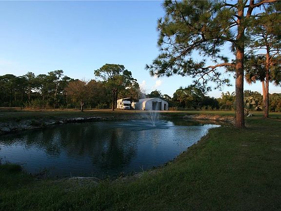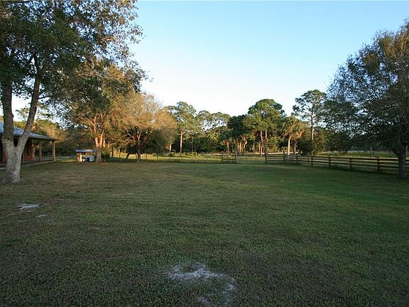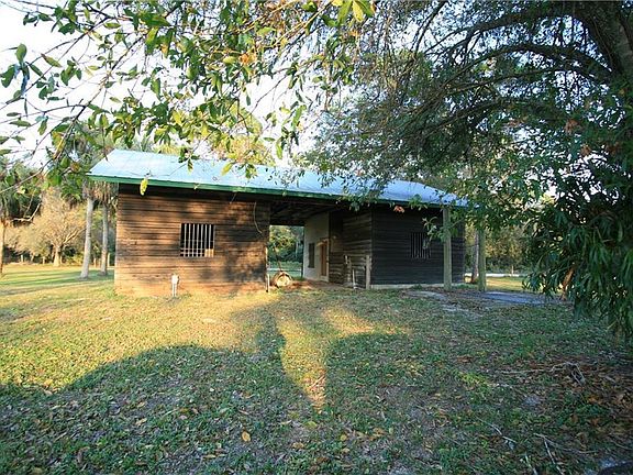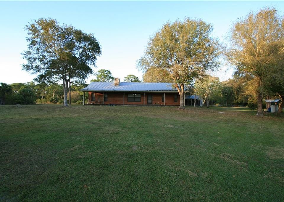 This is it! 3 bedroom 2 bath CBS home on 5 acres. Corner lot completely fenced with a 30' x 50 steel Hurricane rated Quonset building that has power & water and a 3 stall plus a tack/feed room barn that has power & water. Cattle chute & round pen. Home & barn both have metal roofs. Large open floorplan, wood burning fireplace & split bedrooms that give the Master suite privacy. Appliances are @ 1 year old and A/C is about 3 years old. Oversized laundry/mud room with an additional side entrance. Hurricane shutters and a huge 60' x 20' screened back porch with a pass through window to the Kitchen that overlooks a stocked pond with a beautiful waterfall fountain. Bring your family, pets, horses & livestock. Sold As-Is. This is a must see wonderful place to call home and relax in the country.