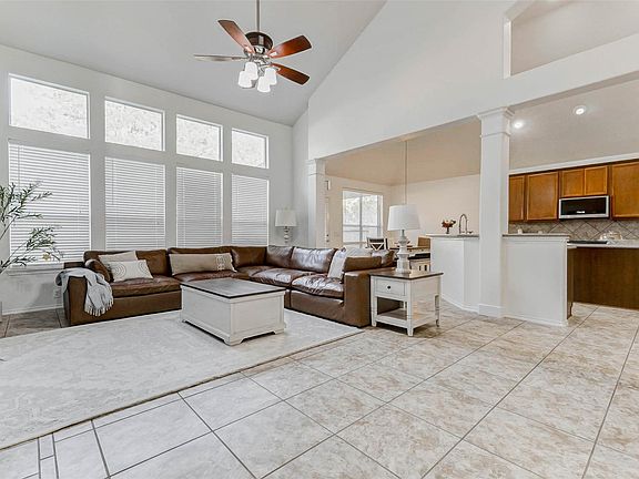 Gas log fireplaceLarge covered patioOpen kitchenLarge walk-in closetJetted tubStainless sinkSoaring ceilings