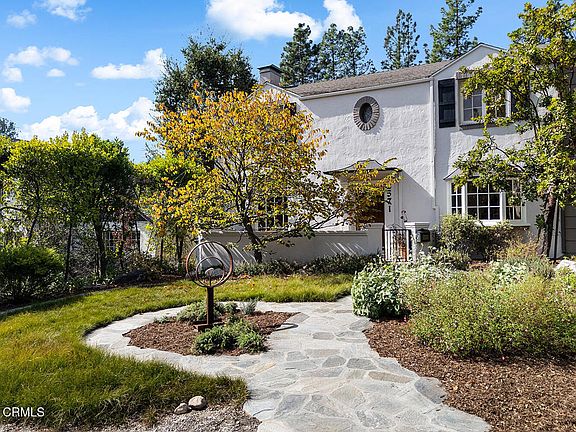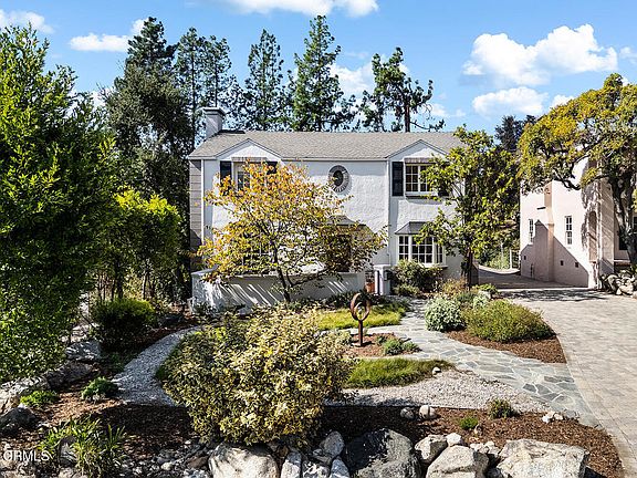 This elegant 1932 colonial on Altadena's Boulder Road is a gem. Preserved architectural elements like hand-troweled stucco, classic brick work and symmetrical facade with large windows provide curb appeal and a welcoming presence. The property is anchored by the street's eponymous granite boulders and handsome curving stone front path around a native grass meadow, with a quiet front patio just beyond a sculptural Redbud tree. A generous paneled wood front door opens to reveal rich oak hardwood floor and plaster walls; the quality and craftsmanship here would be impossible to duplicate in 2025. Comprising over 3000 ft, this 4 bedroom, 3 bath home features hand-finished coved ceilings and flattened arches throughout the public rooms. On the south of the ground floor, a grand living room offers a generous decorative fireplace, casement windows, and French doors opening to the backyard. To the north, the formal dining room with bay window and built-in cabinetry. Both the dining and living rooms connect to the home's generous designer kitchen, featuring custom cabinetry, incredible artisan tilework that elevates the every day to the extraordinary. Rich stone countertops, Shaws farmhouse sink, top-of-the-line fixtures and stainless steel appliances, are a chef's dream. A convenient powder room and pantry provide access to the driveway for quick unloading and easy entertaining. Past the kitchen office niche, down a few steps find a spacious family room with soaring ceilings, walls of windows, a second fireplace and access to the backyard. A fabulous bonus: sprawling basement with pantry and storage is just steps down from the family room. Bedrooms and private spaces can be found on the second floor, up a terracotta-hued magnesite floor staircase, a piece of craftsmanship to be cherished. Four bedrooms enjoy natural light, views and ample closet space. The large primary suite offers incredible mountain views, a full ensuite bath, with soaking tub and direct access to balcony overlooking the backyard. Another stylish full bath boasting custom tile work, stone countertops, and skylight, and the windowed laundry room with its own sink complete the upper level. Outside, the entertainer's backyard is fenced with a covered outdoor kitchen and dining patio space and backyard punctuated by more spectacular granite boulders. Incredible mountain views, proximity to beloved local spots...this is a rare opportunity to own a piece of historic architecture in the foothills.