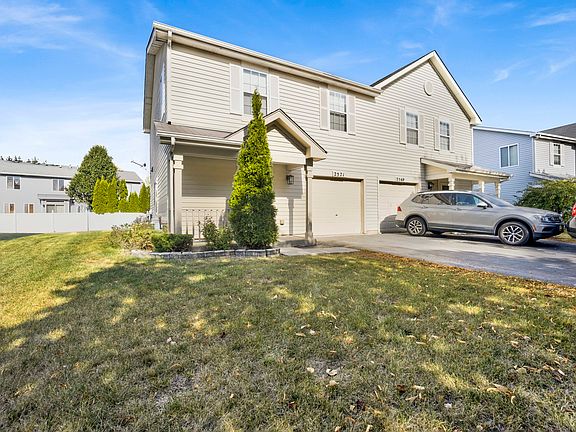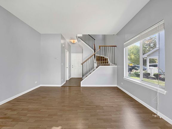 featuring **Neuqua Valley High School**. Bright and open living and dining areas with **laminate flooring**. The large primary bedroom includes a **private bath** and a **huge walk-in closet**. The **spacious loft** is perfect for an office or family room. Convenient **in-unit washer and dryer** and plenty of **storage** under the stairs and in the **attached 1-car garage**. Enjoy relaxing on the **front porch** or entertaining in the **huge backyard**. Prime location close to shopping, restaurants, movie theater, and public library.