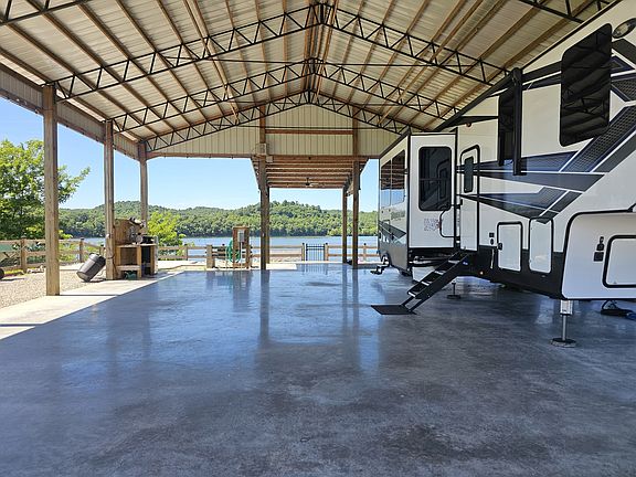 Paradise Landing lot 230 is a fully developed waterfront RV lot with all the bells and whistles! 2 full sets of RV hookups located under the covered 40x50 pole barn with concrete slab! There is also a 14 x 12 attached concrete patio for entertaining or grilling. 60 ft of water frontage on the main channel of the TN River provides stunning sunsets and close-up views of barges, pleasure boats and wildlife! This lot has been graveled and fenced so bring your furry friends! Located half way between Nashville and Memphis and just a short drive to the quaint town of Clifton where you will find sandy beaches, a Jack Nicklaus designed golf course and a year round marina! No HOA! $555 annual maintenance dues for roads, gate, community boat ramp and dock and community storage area for your rig above the flood plain. Great friendly community and no state income taxes! 5th wheel camper and Class C motorhome ore not included but available for negotiation.