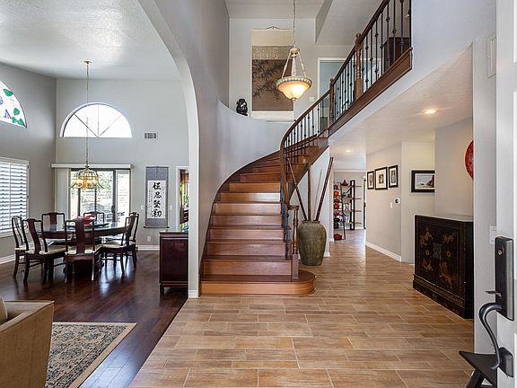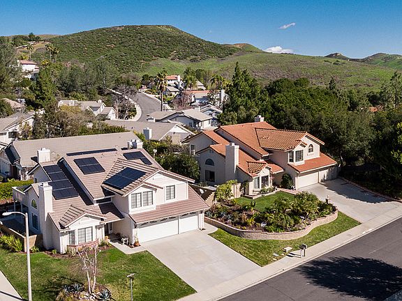 Welcome home to this gorgeous Brock Collection home in the heart of Thousand Oaks. With an appealing 5 bedrooms and 3 full bathrooms, this pool/spa home is perfect for any buyer. Once you enter, you will notice the vaulted ceilings and the picturesque living room with a glass rock gas fireplace. The formal dining room leads you into the exceptional kitchen that encompasses granite counters, walk in pantry, stainless steel appliances and a separate office nook area. The family room, which has an additional fireplace, also comes with a wet bar which provides additional storage and entertainment space. The spacious master bedroom has a balcony; which overlooks the sparkling pool and spa. The master bathroom has a walk in closet and a separate shower and tub. There are three additional bedrooms upstairs with one large room currently being used as a game room. There is also a full bedroom & bathroom downstairs for added convenience. Other amenities include: solar panels, nest system, plantation shutters, 3 car garage, wine storage closet, wrought iron railing, and Brazilian walnut flooring throughout. This home is close to schools (Lang Ranch Elementary), parks and shopping! Come by and see this home today!