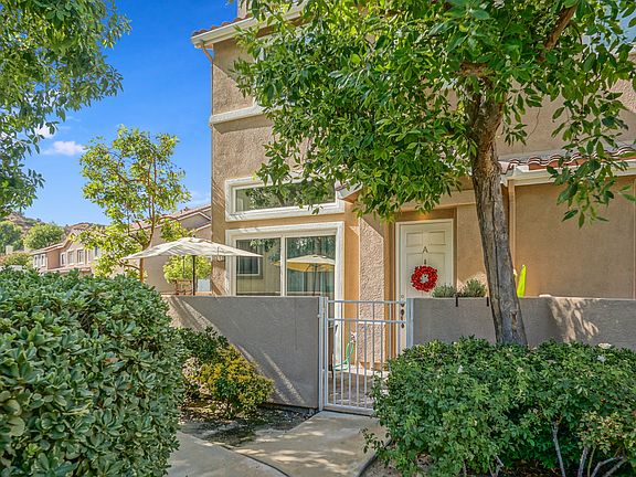 Stunning Turnkey Toscana end unit in Stevenson Ranch with 3 Bedrooms, 3 Bathrooms, that has a large private patio area with Slate Flooring. As you enter this Gorgeous Model-Like home, you are at awe with all the upgrades from the Stunning Wood-Like Tile Flooring, Designer's Style throughout the home, Professionally Painted, Custom Window Treatments, Plantation Shutters, Crown Moulding, Fireplace with Slate Stone, Cathedral Ceilings, Incredible Updated Kitchen with Newer Stainless Steel Appliances, Large Granite Island & Granite Counter Tops w/Subway Tile Backsplash and upgraded Plush Carpeting in the Bedrooms, Ceiling Fans and Recessed Lighting. Large Living Room w/fireplace, Family Room off the Kitchen area and separate Formal Dining area. Shows very light and bright. Large Master Bedroom w/walk-in closet. Great Master Bathroom with framed mirrors and tile flooring. In addition, it has a security system and Honeywell WiFi thermostat and many more other features. Attached 2 car garage with direct access. Excellent Award Winning Schools, Close to Shopping/Restaurants & Easy Freeway Access.