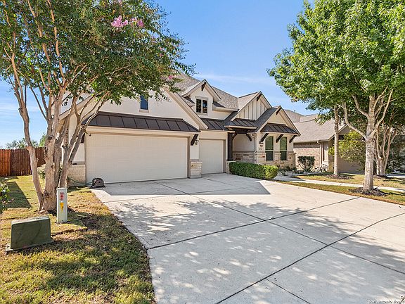 Enjoy Breathtaking Hill Country Views on a true Greenbelt from your covered patio and extended deck, perfect for entertaining or enjoying a nice dinner with a view. Stunning 4 Bedroom/3.5 Bath + Game Room & Media Room. 3 car garage. Gleaming wood floors, soaring ceilings, & full of natural light. kitchen boasts upgraded Granite, custom cabinetry, back splash, double oven, gas cooktop. Luxurious Primary Suite w/ Bay Window & Spa-Like Bathtub and separate shower, Large Walk-in closet! 3 Secondary Bedrooms & 2 additional Full Baths all downstairs. Upstairs, media room, Gameroom and a 1/2 bath. Outstanding Comal ISD. Schoools, No city taxes. Community pool, basketball court, tennis court, playground and walking trails.
