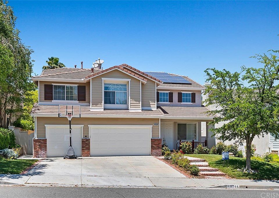 Remarkable Stevenson Ranch Home with Fantastic Pool Size lot located a 3-10 award winning school district! This home has 5 Large bedrooms (one bedroom & bathroom downstairs) 4 bath room, Huge Master Suite w/dual fireplace and big sitting area, remodeled master bathroom, huge office/loft with custom dark wood cabinets, big kitchen w/granite counter tops & big island, nook area, incredible size family room w/fireplace & big projection screen, separate formal dining room & living room. The enormous pool size backyard has a BBQ with stainless steel refrigerator & stove. This home is walking distance to the award winning elementary school & park. 3 Car Garage with built-in cabinets and so much more. Solar is installed with loan balance around $13000.