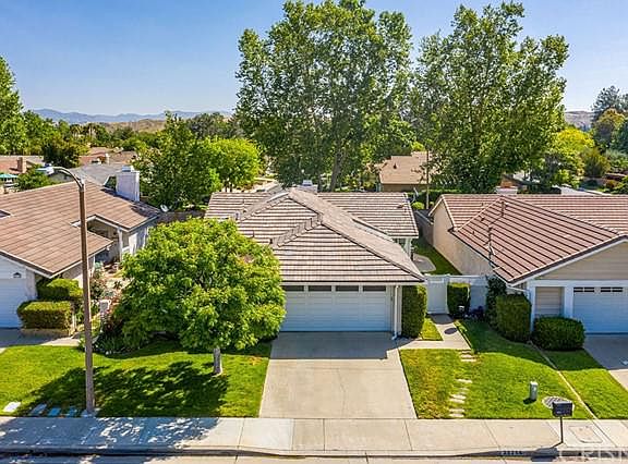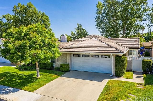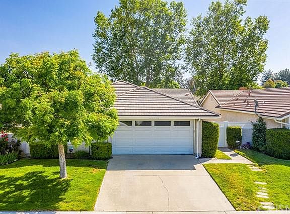 Charming Valencia Valley single story. One of the most sought after neighborhoods in Valencia! One of the larger models of the Discovery tract. Kitchen has granite counter tops, white cabinets with newer hardware, stainless steel appliances and bar height seating. The main suite features a slider to the patio looking out to the private back yard. Master bath was remodeled for your pickiest buyers. Trendy tile floors, gray dual vanity sink with quartz counter tops, shower features white subway tile, with round mosaic white tile floor. 3 more additional bedrooms, one of which is oversized. Hallway bathroom has been remodeled with new fixtures, mirrors and hardware. Gray laminate floors throughout, with carpet in the bedrooms. Newer dual pane windows, water heater, and front gate. No rear neighbors! Easy access to the walking paseos, community pools and park. Walking distance from the highly rated Valencia Valley Elementary school, Granary Square and Town Center. Low HOA and NO MELLO ROOS!