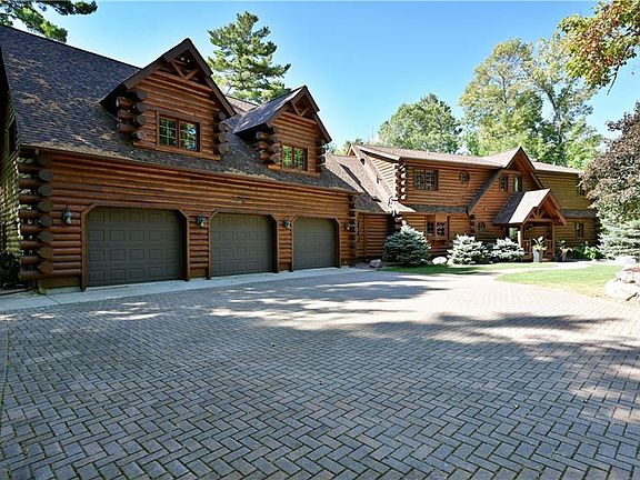 Discover your dream retreat with this stunning log cabin chalet! Loaded with high end finishes featuring a spacious great room, gourmet kitchen with a French range, large dining area & ensuite bedrooms. Enjoy your time in the two-story great room with majestic stone fireplace & breath-taking views from floor to ceiling windows overlooking pristine Red Cedar Lake. With a cozy loft, lakeside office retreat, expansive bunkhouse, additional bedrooms providing ample sleeping space, & large rec room with gym make for ideal getaways. 3 car garage attached & 2 car aux garage for toys. Outside offers extreme privacy, deck for alfresco dining & patio with relaxing fire pit. New dock & lift included; with private lake access for swimming, fishing, & boating. Attached to Hemlock & Balsam Lakes, Red Cedar Lake offers over 2400 acres, miles of recreational fun, great fishing, stunning scenery, boat up golf course, restaurant & pub (live music). Great rec area with access to ATV & snowmobile trails.