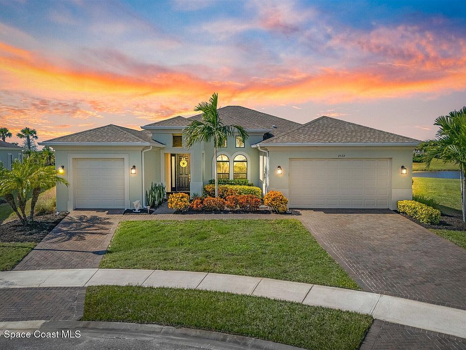 Situated on a .47-acre lot in Bridgewater, Viera's prime 55+ community, this rare sought-after Boretto plan has 3 bedrooms plus a study w/ glass doors and closet, 3 baths, garages for 3 cars and includes a front courtyard flanked by a two-car garage and a separate one car garage! Imagine having two sealed paver driveways! Must have features include tile throughout, 8' doors, tray ceilings, crown moldings, and four sliders that lead to an expanded screened lanai! The gourmet kitchen delights with stunning newer designer quartz kitchen counters, enlarged island w/disposal button and touch faucet, upgraded refrigerator and d/w, and custom shelves in pantry. Enter primary bedroom through double doors into a true retreat with luxury bath w/tub and separate tile shower, tray ceiling, walk-in closet with dual entries and built-ins! Active 55+ gated community offers a resort style clubhouse with heated pool/spa, fitness center, movie theater, tennis & pickleball courts and HOA does lawncare