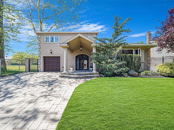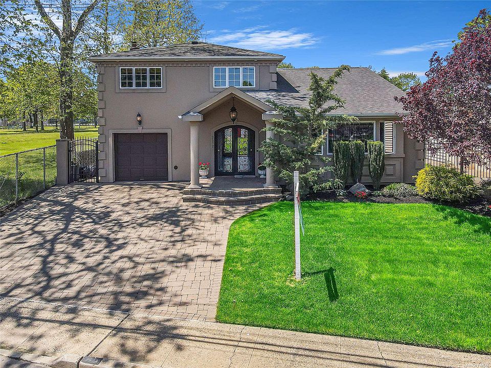 This beautiful split style home is beautiful throughout and boasts an open floor plan layout with a granite kitchen, stainless steel appliances and an island that is completely open to the dining area and the living room. The backyard features a 16'x32' built in pool with new liner. This oversized backyard also has a custom shed, Tiki Bar and yes.... a regulation sized shuffleboard court making this an entertainers dream house! The homes updates include the roof, siding and windows. Taxes reflect star exemption. NO Flood insurance required! The house is adjacent to Newbridge Road Park, Close to schools, shopping, and the Long Island Railroad station.