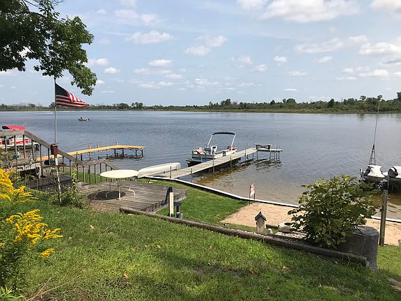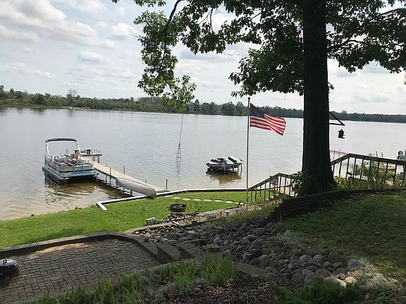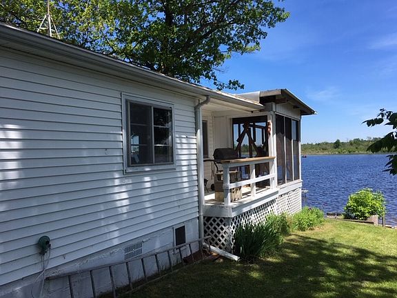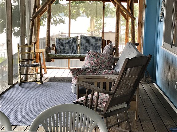 This is a summer 2 bedroom cottage on a quiet 176 acre all sports lake. For those big holiday weekends there is a bunkhouse for additional sleeping. A 180+ degree view of the lake can be enjoyed from a screened-in porch, with a separate porch area for grilling. The lake front boast a sandy swim area with a sea wall and 60 ft dock. The shore has a fire pit area surrounded by grass, and a separate sandy area for sunbathing or building sand castles. Not only does the cottage have a screened in porch but it also has a deck closer to the water you can use while enjoying an unobstructed view of the lake or enjoy an early morning sunrise. The cottage includes a natural gas option.