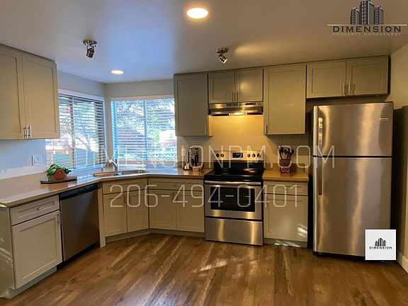 Welcome to this charming 3-bedroom, 2-bathroom rambler located in the desirable area of Kent, WA. This corner lot property is nestled in a cul de sac, providing a sense of privacy and exclusivity. The home boasts a cozy fireplace, perfect for those chilly evenings, and an attached garage for your convenience. The kitchen is a chef's dream with its quartz counters and shaker cabinets, offering a modern yet timeless aesthetic. The home also features washer/dryer hookups for your laundry needs. The hardwood floors throughout the house add a touch of elegance and are easy to maintain. This home is a perfect blend of comfort and style, waiting for you to make it your own.