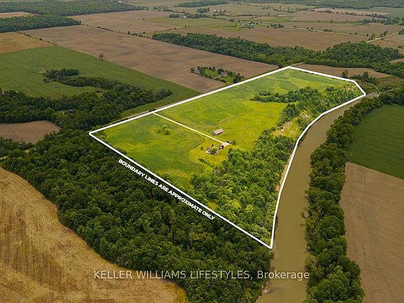 Escape to your own private 40 acre riverfront retreat, where country living meets comfort and endless possibilities. This charming home is tucked away in a peaceful setting, offering both privacy and a lifestyle close to nature. Equestrian enthusiasts will love the 5 stall insulated barn, complete with hydro, water, and hay storage for up to 300 small square bales. Outside, you'll also find a 50 amp RV outlet and a powerful halogen floodlight. With approximately 27 acres of workable land, 23 acres currently planted in hay and the balance as open pasture, this property is as functional as it is beautiful, with potential for hobby farming or rental income. Nature lovers will be drawn to the river for canoeing, fishing, or simply enjoying the view, while the surrounding hardwood forest brings frequent visits from deer, eagles, foxes, and more. Whether you're dreaming of a hobby farm, a rural family retreat, or a natural sanctuary, this property is ready to welcome you home. Inside, cozy up by the wood burning fireplace on cool evenings, or take the gathering outside to a campfire under star filled skies. With hydro access near the treed area, you can light up outdoor get togethers or create a magical seasonal display. Start your mornings with coffee in the screened in front porch, and unwind on the cedar back deck beside a tranquil fish pond. The full basement provides plenty of additional living space, storage, or room for hobbies. Municipal water, septic, propane, and fibre optic internet currently being installed offering the perfect blend of modern convenience and rustic charm. A rare offering of beauty, utility, and serenity this 40 acre gem is truly one of a kind.