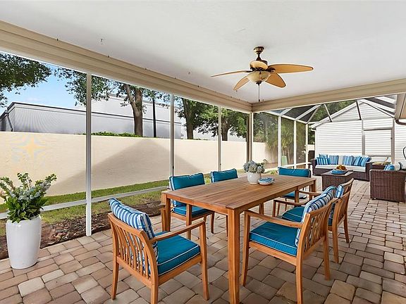 Large screened lanaiCeramic tileNatural gas rangePrivacy wallLarge birdcageSunbrella awningsLuxury vinyl plank