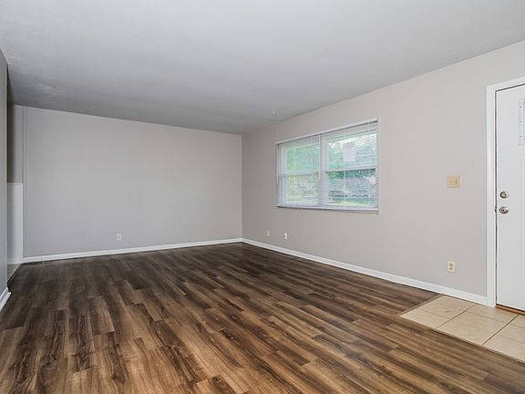 Step inside to a wide living and dining area finished with warm-toned LVP flooring and a large front window that fills the space with natural light. The adjoining kitchen features tile flooring, generous countertop space, and a full suite of appliances, ready for everyday use.