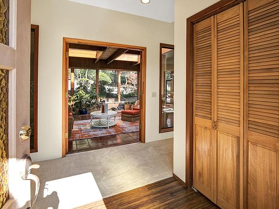 Lovely and spacious, first time on the market! Unparalleled space and location in Carmel Views. Private and peaceful setting in the desirable Carmel School district minutes from downtown Carmel and Carmel Beach, this 3 bedroom/2.5 bathroom home is perfect for entertaining or relaxing. This mid-century inspired home features vaulted ceilings in living room, separate family room, formal dining room, master on main level, enclosed zen atrium, newly painted & new carpet throughout. Situated on a private one acre+ lot overlooking the mature oaks and pines on the property and Fish Ranch in the distance.