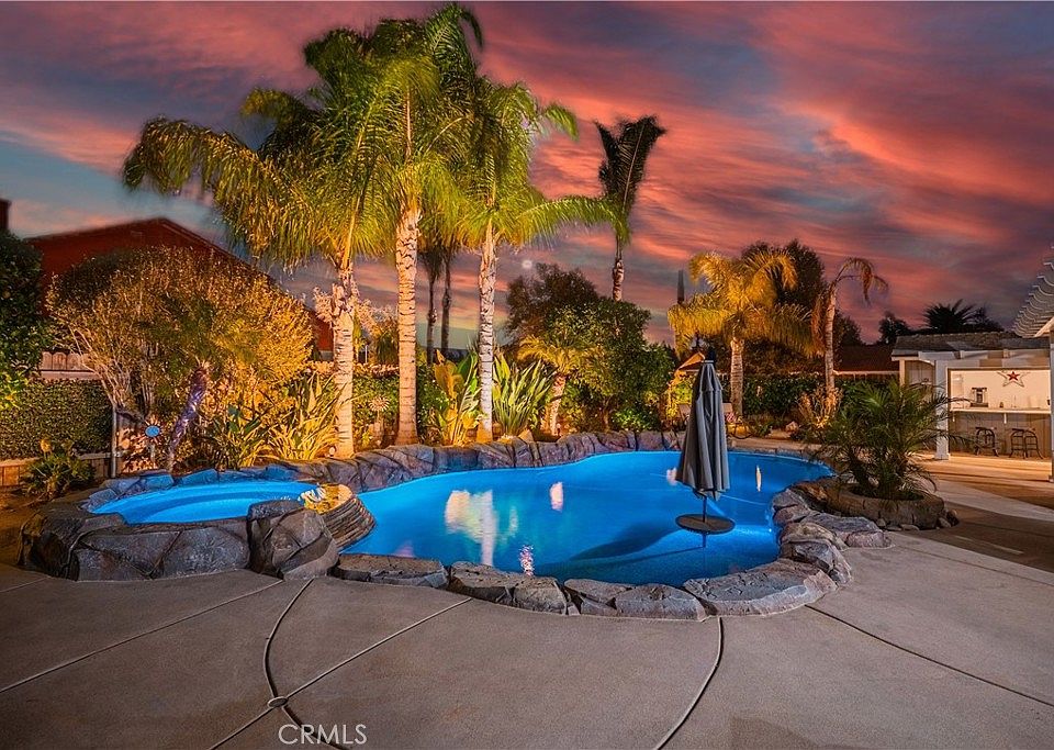 Enjoy a private backyard oasis featuring a Pebble Tec saltwater pool, converted shed turned outdoor cabana, Sonance sound system, and custom lighting. The professionally designed landscaping offers desert-style appeal in the front and a tropical retreat in the back. Additional upgrades include new fencing, rain gutters, a 30-foot patio cover with patio furniture, and an expanded front driveway with brick inlay.