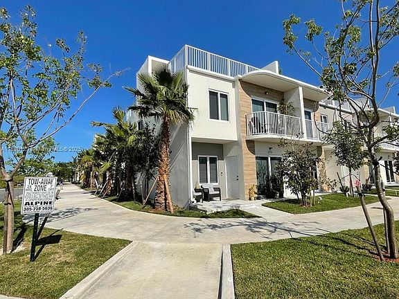Stunning Newly Built Townhome with Rooftop Deck. Step into modern living with this beautifully designed home featuring 3 bedrooms and 2.5 bathrooms. Built with a concrete structure and impact-resistant windows/doors, it combines elegance and peace of mind. The open kitchen showcases stainless steel appliances, quartz countertops, and sleek wood cabinetry, perfect for entertaining. Enjoy porcelain tile floors throughout. The master suite offers a walk-in closet, private balcony, and washer/dryer, plus a tankless water heater and modern finishes. Relax on the rooftop deck with sky views, ideal for outdoor living. Conveniently located near the Turnpike and US1 for easy access to shopping, dining, and more.