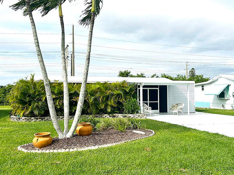 This charming 900 square foot manufactured home in Bonita Terra features 2 bedrooms and 1 bathroom, perfect for full time living or a seasonal retreat. Built in 1988 by Jefr, this cozy abode boasts a spacious living room and family room for entertaining guests or relaxing after a long day. The home also includes a lovely lanai and Florida room, providing additional space for enjoying the beautiful Florida weather all year round. The exterior features a convenient carport for parking and a shed for extra storage. Leased land.Located in the desirable community of Bonita Terra in Bonita Springs, FL, this manufactured home offers residents a peaceful and serene atmosphere. With well-maintained grounds and a friendly neighborhood feel, residents can enjoy a sense of community and belonging. The community also features amenities such as a clubhouse, pool, and fitness center, providing opportunities for socializing and staying active. Additionally, the central location of Bonita Terra allows for easy access to nearby shopping, dining, and entertainment options.
