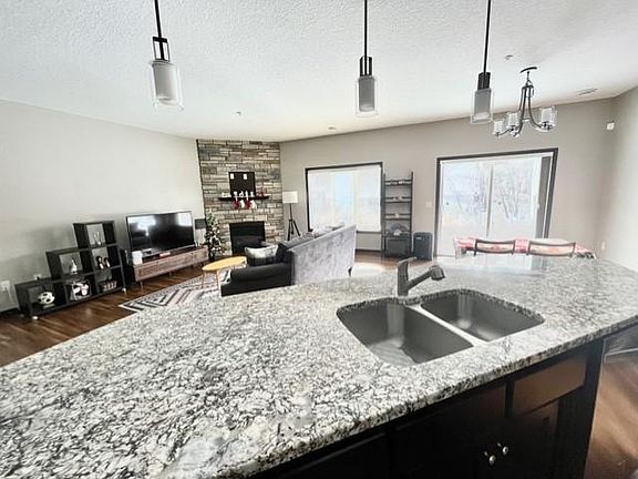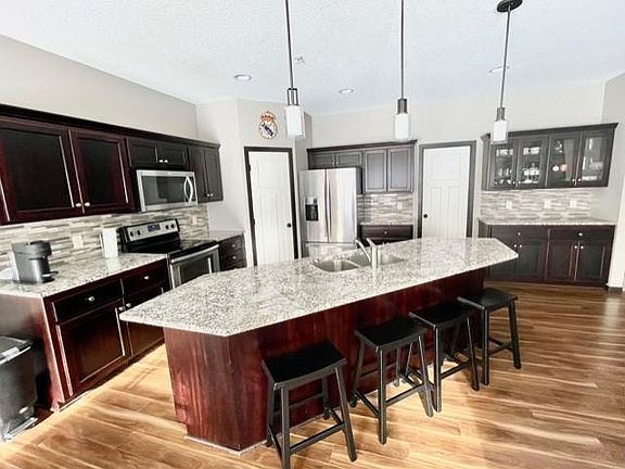 This 3 bed, 3 bath, end unit town home in the Mounds View school district is a must see. There are high end finishes throughout including granite counter tops in the kitchen and all the bathrooms, a stone fireplace in the living room, stairway lighting, laminate wood flooring, and an epoxy finished garage floor. The main level is an open concept living, kitchen, and dining space with room to entertain. The master suite itself has double sinks, a large walk in closet, and separate shower and bath. All 3 bedrooms are on the second level along with the laundry and a large loft area.