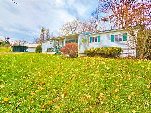Cozy and quaint trailer home located on 1 acre just north of Branchport, NY and Keuka Lake. Enjoy the view across the valley from the front porch into a forever wild preserve. The 1 car garage gives you shop space with a carport. The property also features a second outbuilding for storage or parking. Inside the home is ready for winter. The propane furnace was replaced in 2018. The updated kitchen includes all the appliances and is spacious enough for an eat in table. The back sliding glass doors allows plenty of natural light and access to the private back deck and yard. Most of the windows have been replaced throughout the house. 2 existing bedrooms and an office which could provide for a 3rd bedroom in the future. The addition creates more living space, storage, a bonus rec room ( previously the work out / hot tub room ) and the laundry area. All appliances with the washer and dryer are included. The septic was updated in 2017 with a NEW tank & leech field. New metal roof was installed in 2020, together with a new pressure tank and submersible well pump. The 200A electric entrance gives you plenty of power for the house and your shop. AS IS SALE - If it is on the property it is included with few exceptions. The house will come furnished, all set for snowbirds or your year round home. Proof of funds and financing apply.