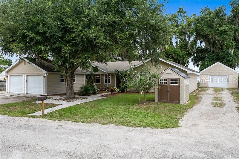"MARKET PRICE ADJUSTMENT!!" Looking for a change? This home isn't just a home, it is your chance to buy a LIFESTYLE! Located down a secluded dirt road you'll find a spacious 4 bedroom, 2 bathroom home with a paver walkway leading from the driveway to the front door surrounded by 2 garden beds. The wood laminate foyer accesses the open floor plan featuring a dining area, spacious kitchen with island and over-sized walk in pantry. Enjoy the view of Alligator Lake from the living room with a wood burning fireplace. The living room opens up to the Sun room/Office, with lots of windows and lake views that allow lots of natural light to brighten the mood. Master suite features French doors to access the NEW rear covered patio overlooking the backyard with fire pit, shade from a mature oak tree, WORKSHOP and so much more! Master bathroom includes a spacious granite counter-top with walk-in shower and closet. The NEW covered rear patio opens to stunning views of Lake with a small sand beach area, NEW dock which is great for relaxing and fishing and plenty of room for all your water toys! With a NEW METAL ROOF and OVERSIZED WORKSHOP this lake front lifestyle is sure to check off all the items on your list!
